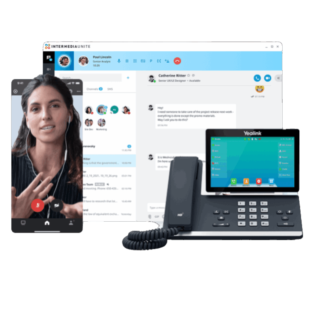 Host high-definition, encrypted video calls with screen sharing and collaboration features—fully integrated into your phone system.